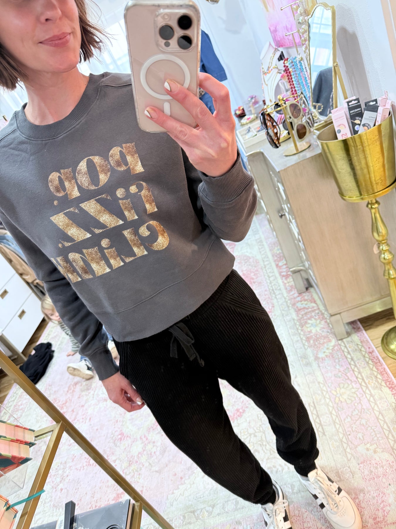 This cropped sweatshirt brings all the vibes—soft fabric, a modern cut, and our fav POP • FIZZ • CLINK front and center. Perfect for casual days, errands, or a cute night in with your fav bubbly.
